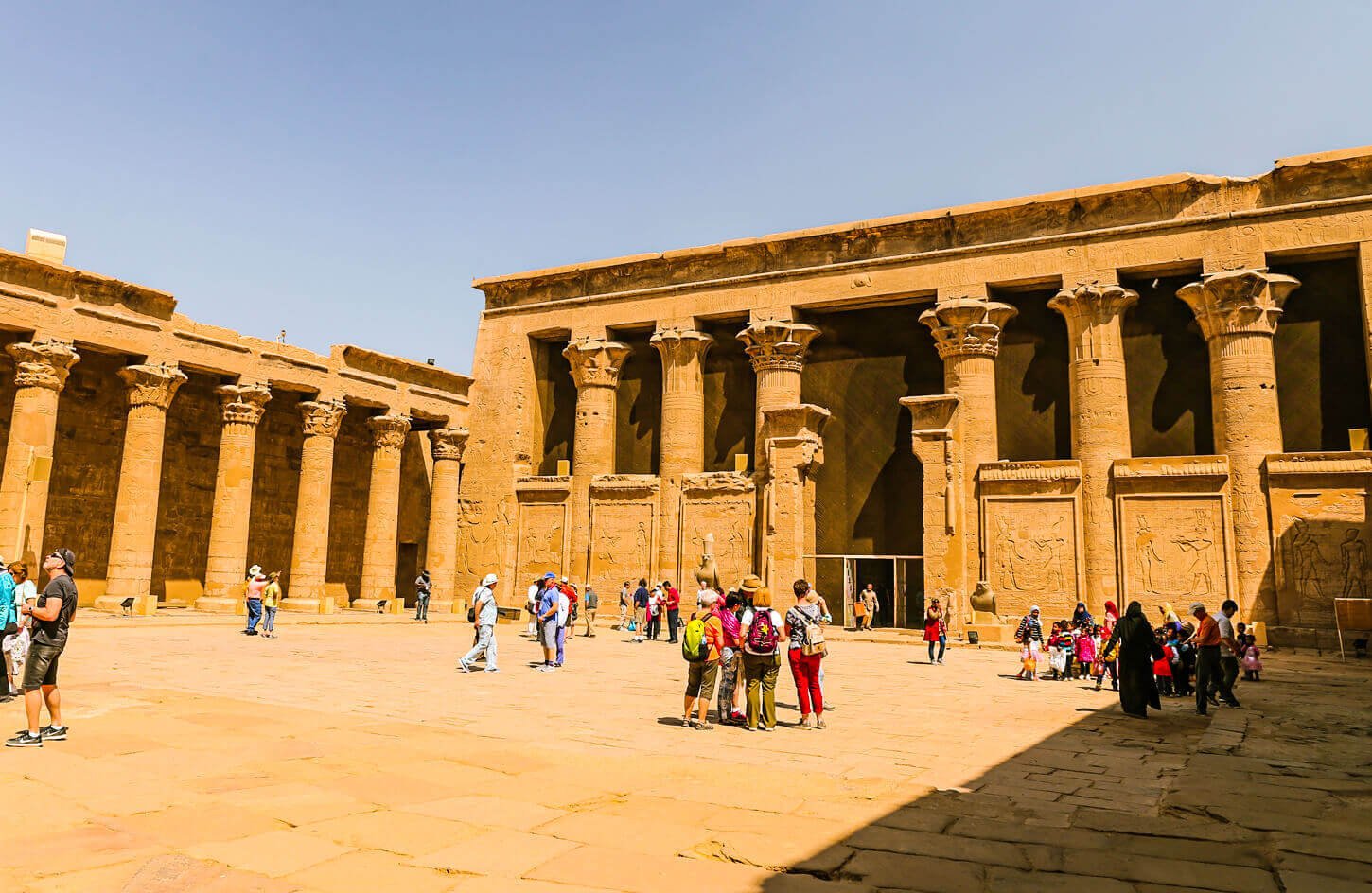 After breakfast, sail to Edfu and visit the well-preserved Temple of Horus, dedicated to the falcon-headed god.