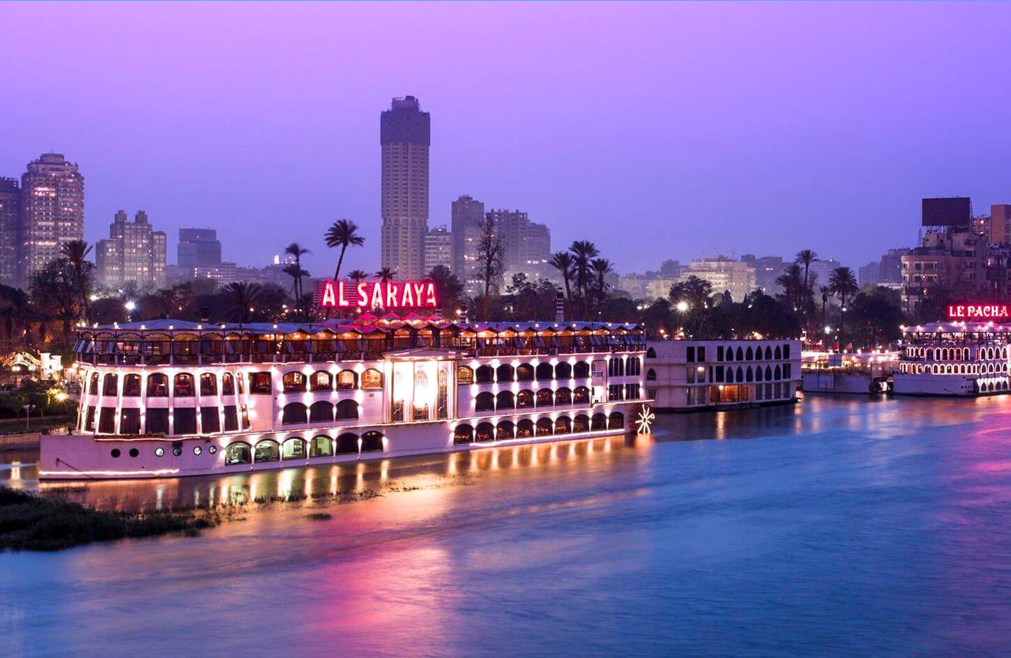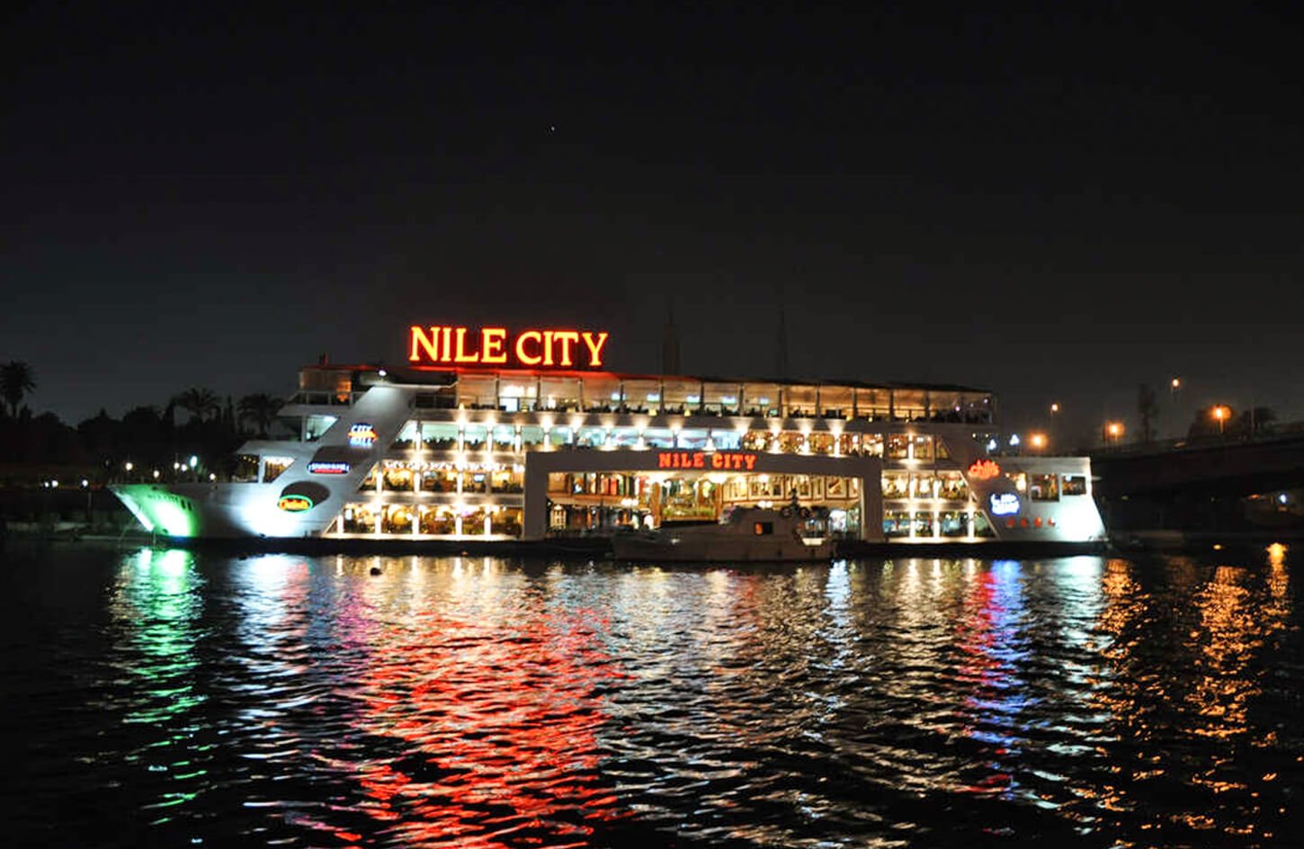 Experience an unforgettable evening in Cairo with the Nile Dinner Cruise & Show. Begin your night with a comfortable transfer to the Nile River, where you’ll board a luxurious cruise boat. As the boat sets sail, enjoy a delicious buffet dinner featuring a variety of Egyptian and international dishes. While dining, immerse yourself in the enchanting atmosphere of the Nile, with the Cairo skyline as a stunning backdrop. After dinner, be captivated by a mesmerizing oriental show that includes traditional music, belly dancing, and folk performances, showcasing Egypt’s rich cultural heritage. Relax and enjoy the live entertainment as the lights of Cairo shimmer on the river. This evening combines relaxation, culture, and breathtaking views, making it the perfect way to experience Cairo’s vibrant nightlife while cruising along the historic Nile River.