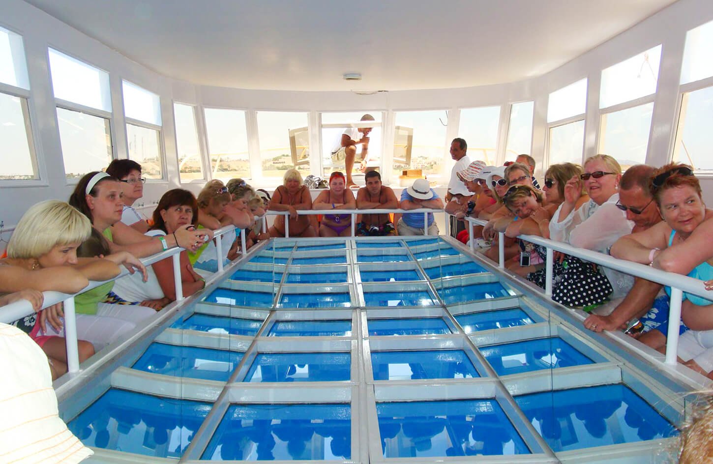 Set off on a mesmerizing adventure aboard a glass-bottom boat in Sharm el-Sheik and discover the underwater beauty of the Red Sea without getting wet. This one-hour experience is ideal for families, couples, and solo travelers, offering a clear view of colorful coral reefs and marine life right beneath your feet. As the boat gently cruises above the reefs, you’ll enjoy a front-row seat to a vibrant world of tropical fish and dazzling sea creatures. With its relaxing pace and crystal-clear viewing panels, the glass boat trip is a perfect way to explore Sharm el-Sheik’s marine treasures in comfort and style—no diving gear required.